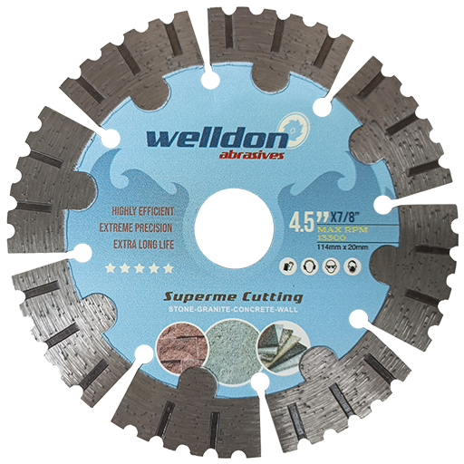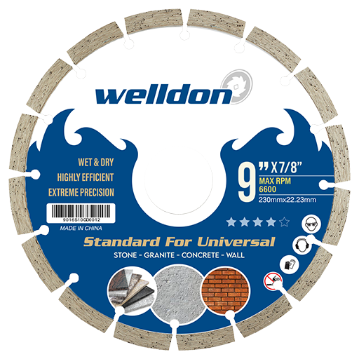 Welldon Segment Diamond Blade is designed for fast, efficient cutting of hard materials. Its segmented rim allows excellent debris removal and cooling, making it suitable for both wet and dry cutting.