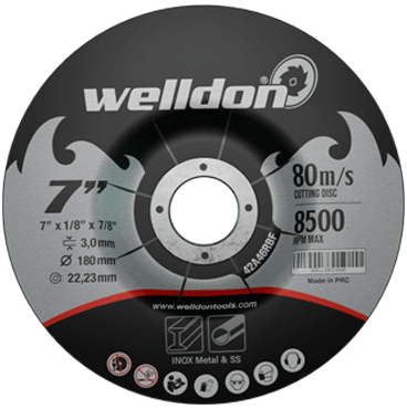 Welldon T41 Cutting Disc with Black Paper is a flat-center cutting disc designed for fast, straight, and precise cuts. Its black paper reinforcement adds durability and stability, ensuring smooth cuts with less vibration.